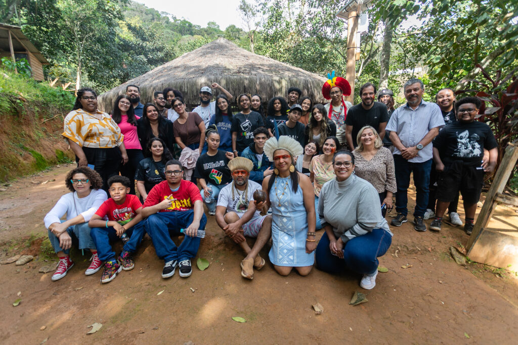 O terceiro encontro levou a turma até a Aldeia Filhos Dessa Terra – Espaço Kaimbé, no Núcleo Luizinha Pankararú em Guarulhos, onde foram recebidos pela liderança indígena Poyanawa-Puri. A atividade abordou decolonialidade, educação e agroecologia e trouxe reflexões profundas sobre ancestralidade, identidade e resistência dos povos indígenas em territórios urbanos: