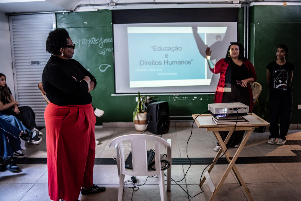 O primeiro encontro aconteceu na sede da UNEafro Brasil, em São Paulo, e contou com a participação da educadora Edineia Gonçalves, que abordou relações étnico-raciais e educação em direitos humanos. Para ela, o desafio da educação é fazer emergir o conhecimento do outro e construir uma escola intencionalmente antirracista: